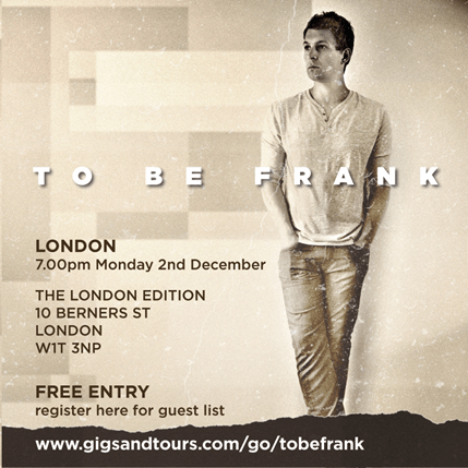 To Be Frank has just announced his first headline gig at Basement, The London Edition on December 2nd.